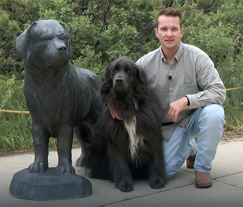 This statue of Seaman, the Newfoundland who accompanied the Lewis and Clark expedition, is located at the Lewis and Clark Interpretive Center in Great Falls, Montana, which is also home to a statue grouping honoring Lewis and Clark — and Seaman. Check it out here at The Cultured Newf.